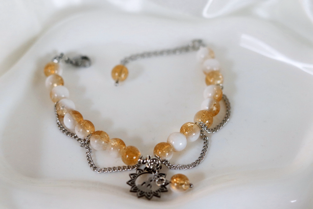 • Materialien: Glasperlen, Edelstahlverschlüsse, Edelstahlanhänger