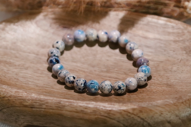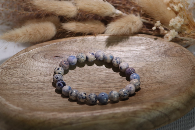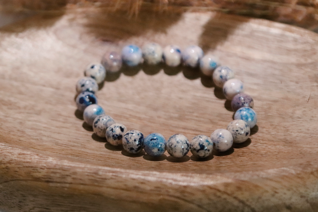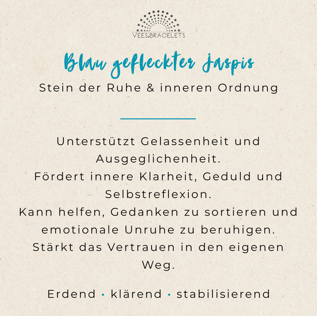Blau gefleckter Jaspis wird traditionell als Stein betrachtet, der Gelassenheit und Ausgeglichenheit fördern kann. Er gilt als unterstützend dabei, Gedanken zu sortieren, innere Klarheit zu finden und emotionale Unruhe zu beruhigen. Durch sein schlichtes, zeitloses Design ist das Armband ein dezenter Begleiter für den Alltag – präsent, ohne sich aufzudrängen.